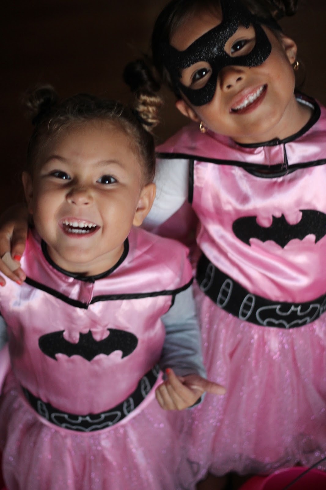 Silly girls, they were so excited yesterday, they couldn't wait to put their Bat Girl costumes on! The big kids each do their own thing with friends on Halloween, kinda sad:( But that's part of letting go. At least momma and Daddy have these two to keep us company!